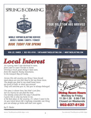March. Three end of season ice events take place in Digby before the rink closes, also a movie night and theElectric City AGM will be held in Weymouth. The libraries are active as ever, including March break activities. On a regular basis there is now a breakfast on certain Saturdays by St. Bernard Fire Dept,and darts in Meteghan on Thursday evenings. Lets hope it warms up soon too!