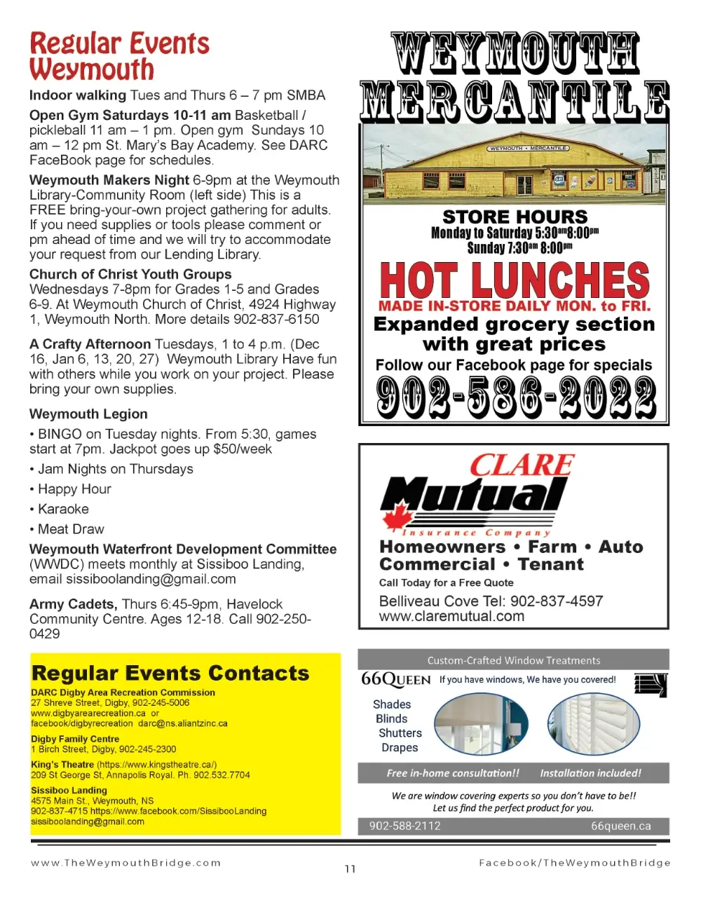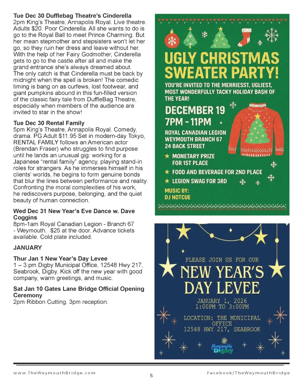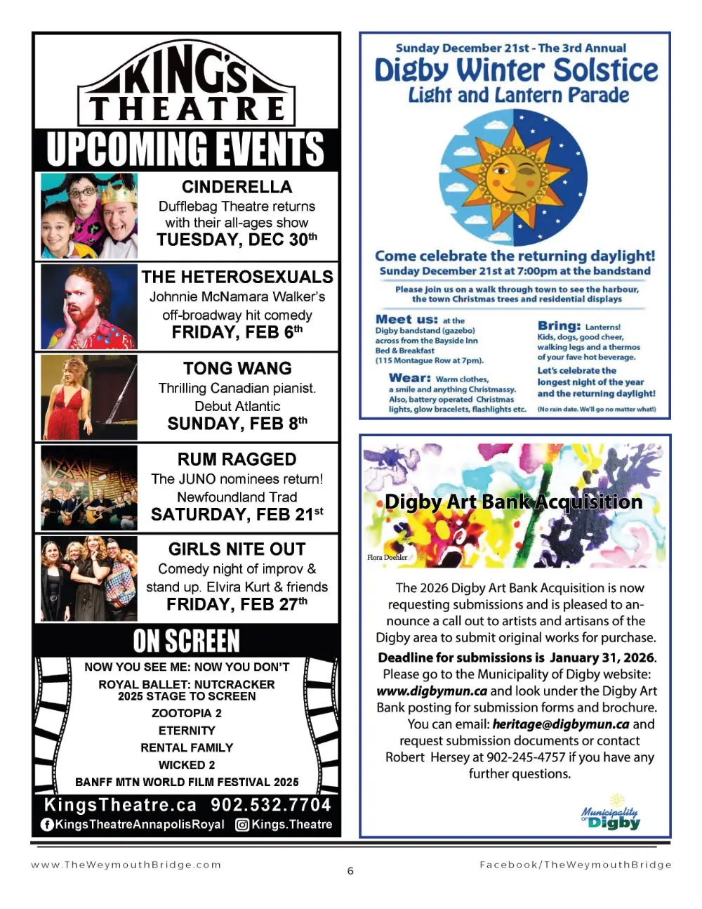 Weekly Events Update, February 19 2026African Heritage Month is being celebrated in Weymouth with three events at Sissiboo Landing. And for those not in Weymouth, there are lots of new events below, both this week and in the weeks and mon