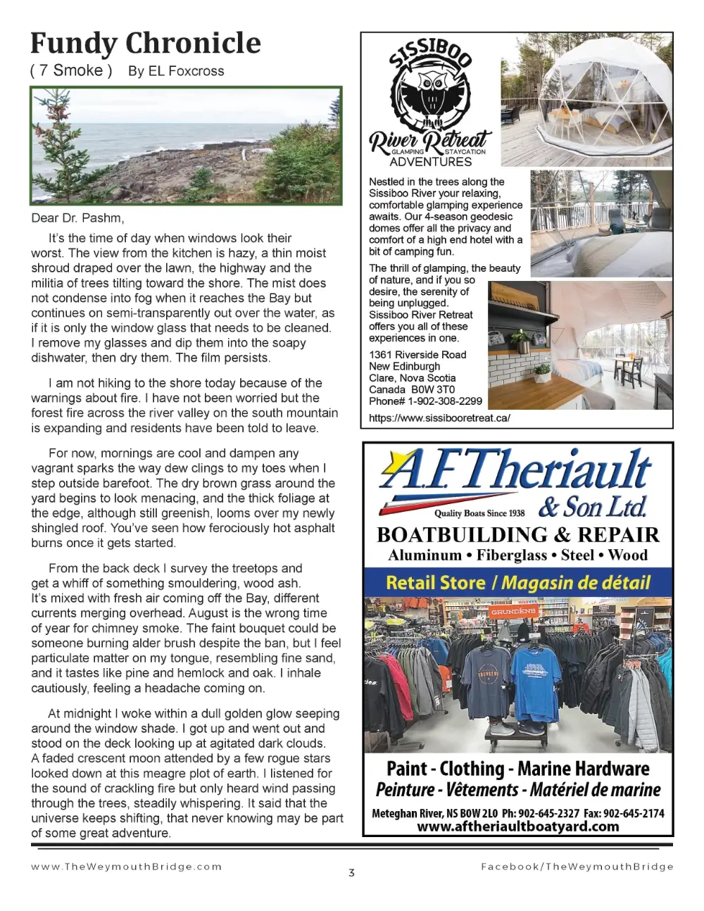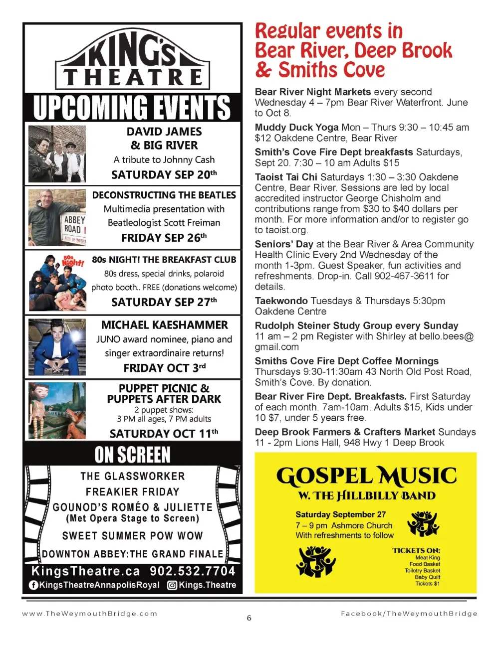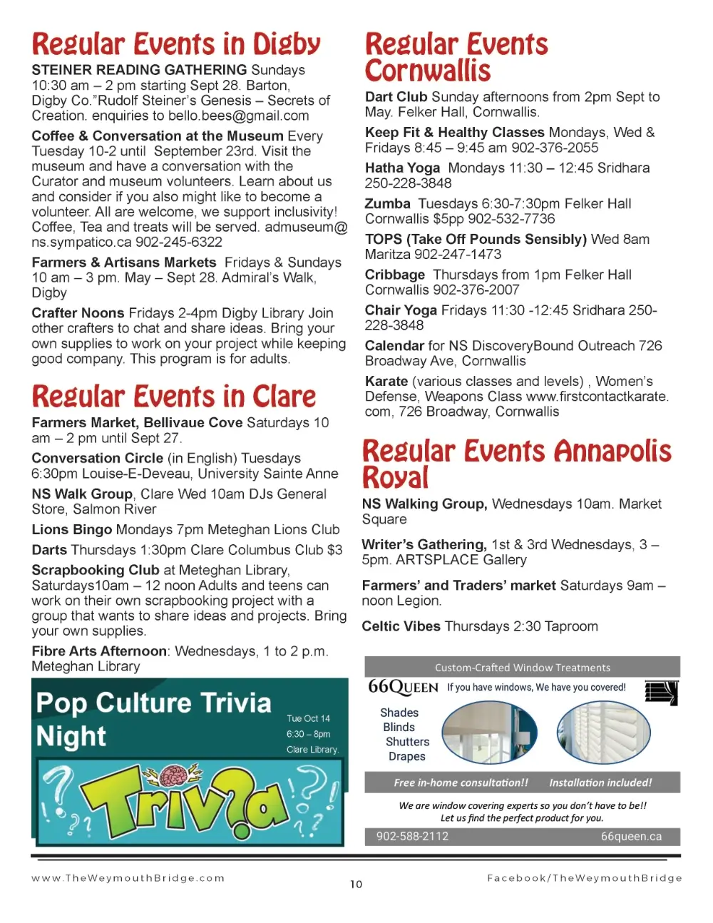 Free events newsletter for Annapolis Royal,  Digby and Clare, Nova Scotia